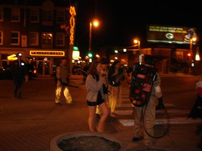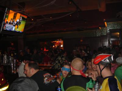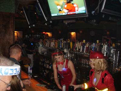 Nicht weit von unserem Apartment sind ja schon mal an die zehn Bars, also haben wir uns natürlich zuerst mal zwecks Vorglühen dorthin begeben. Zu unserer Schande muss ich gestehen, dass wir eindeutig die "Kostümpflicht" unterschätzt haben und deswegen letztendlich einfach als "Deutsche" gegangen sind (einer hatte sogar das WM Trikot von diesem Jahr an). Auf der Strasse gings dann wirklich ab...überall liefen verkleidete Menschen herum...