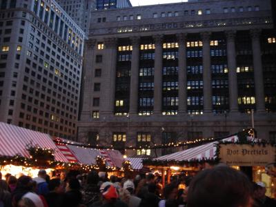 zurück zu unserem Tag...wir kamen zurück vom United Center und hatten gehört, dass gerade Weihnachtsmarkt in Chicago sei und die Christbaumbeleuchtung an diesem Abend angeschaltet würde mit einer feierlichen Zeremonie...da dachten wir uns natürlich...cool...Weihnachtsmarkt...das bedeutet Glühwein...das bedeutet Spass...Spass ist gut...also nix wie hin...